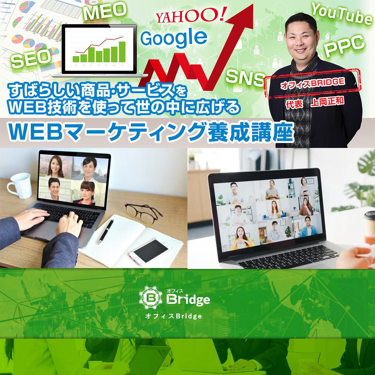 この講座は、インターネットを活用してビジネスを展開するための基本的な知識やテクニックを学ぶことができます。具体的には、SEO対策やリスティング広告、SNSマーケティング、コンテンツ制作など、実践的なスキルを習得することができます。